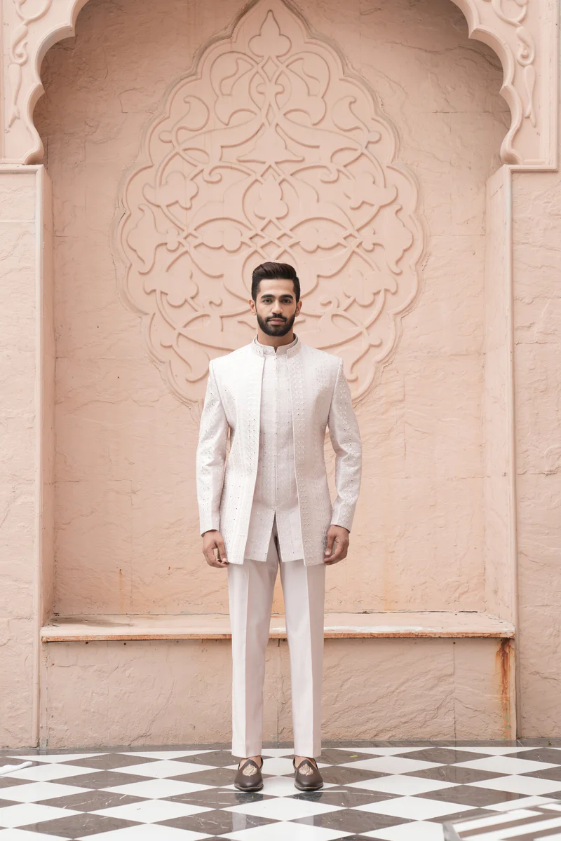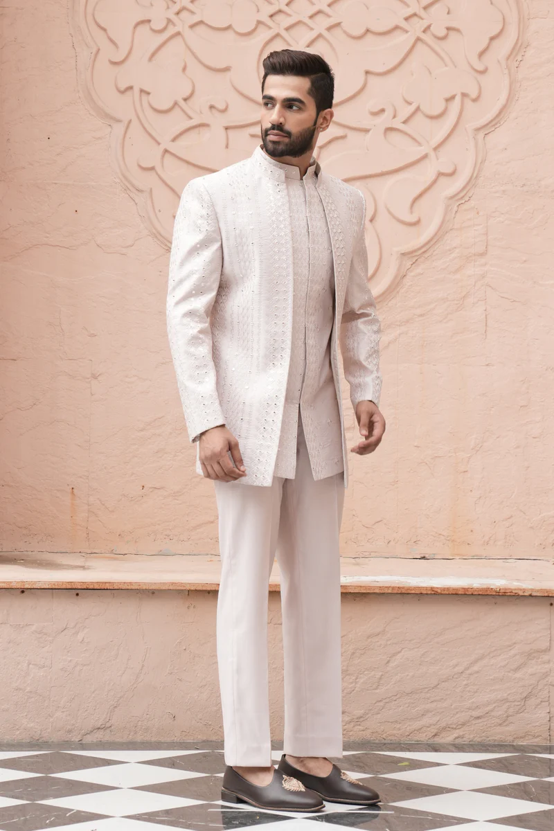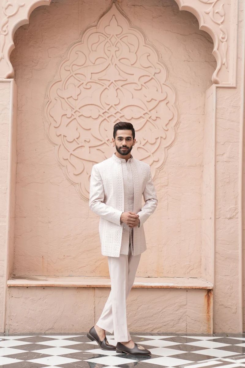 Be the first to review “L Peach Color Jodhpuri Indo Western Set for Men”