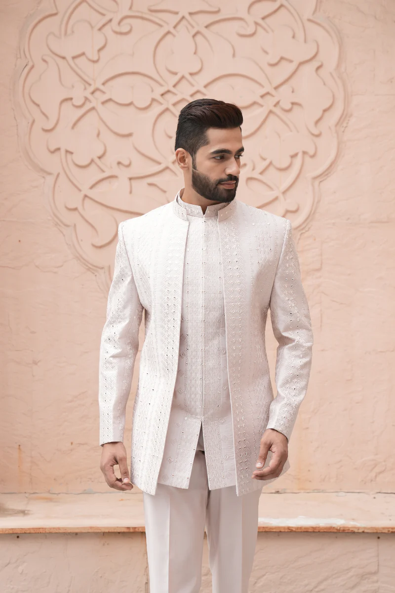 Previous Product Next Product Wine Color Jodhpuri Indo Western Set for Men ₹5,999.00 Wine Color Jodhpuri Indo Western Set for Men quantity Add to cart Category: Indo-Western Description Reviews (0) Description Colour -Wine Pattern – Jacket Indo Collar – Jodhpuri of Pieces -Dupatta Fabric -Silk Style – Designer Pocket – Fit – Regular Button – Reviews There are no reviews yet. Be the first to review “Wine Color Jodhpuri Indo Western Set for Men” Cancel replyYour email address will not be published. Required fields are marked *Your rating * Rate… Perfect Good Average Not that bad Very poor Your review *Name * Email * Save my name, email, and website in this browser for the next time I comment. Opens in a new window Tweet This Product Opens in a new window Share on Facebook Opens in a new window Pin This Product Opens in a new window Mail This Product Related products Quick View Quick View Indo-WesternBlack Color Embroidery Indo Western Set for Men ₹7,999.00 Add to cart Quick View Quick View Indo-WesternL Peach Color Jodhpuri Indo Western Set for Men ₹5,999.00 Add to cart